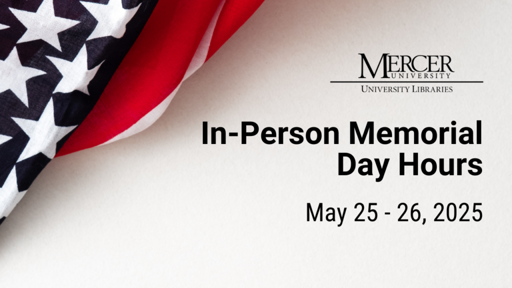 The Mercer University Libraries will observe Memorial Day by altering our in-person service hours.